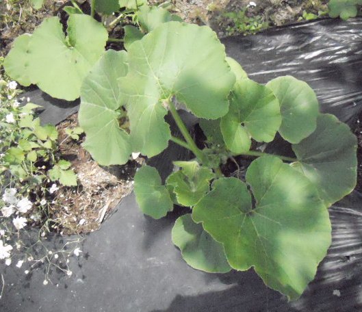 南瓜…………栗坊は葉が大きくなり元気に成長中。父の南瓜も元気