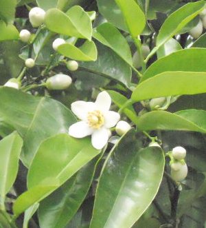 家の庭では甘夏の花が、畑では八朔の花が咲いています。